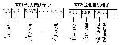 6) 其他可設功能:0~24小時內可任意設置定時輪換或開機關機;輔助小泵及輔助氣壓罐;當從水井抽水或從泵部以下水池抽水時可設立真空引水罐或引水箱,并對引水進行自動控制,引水停水時自動停機,恢復時自動復機等。
